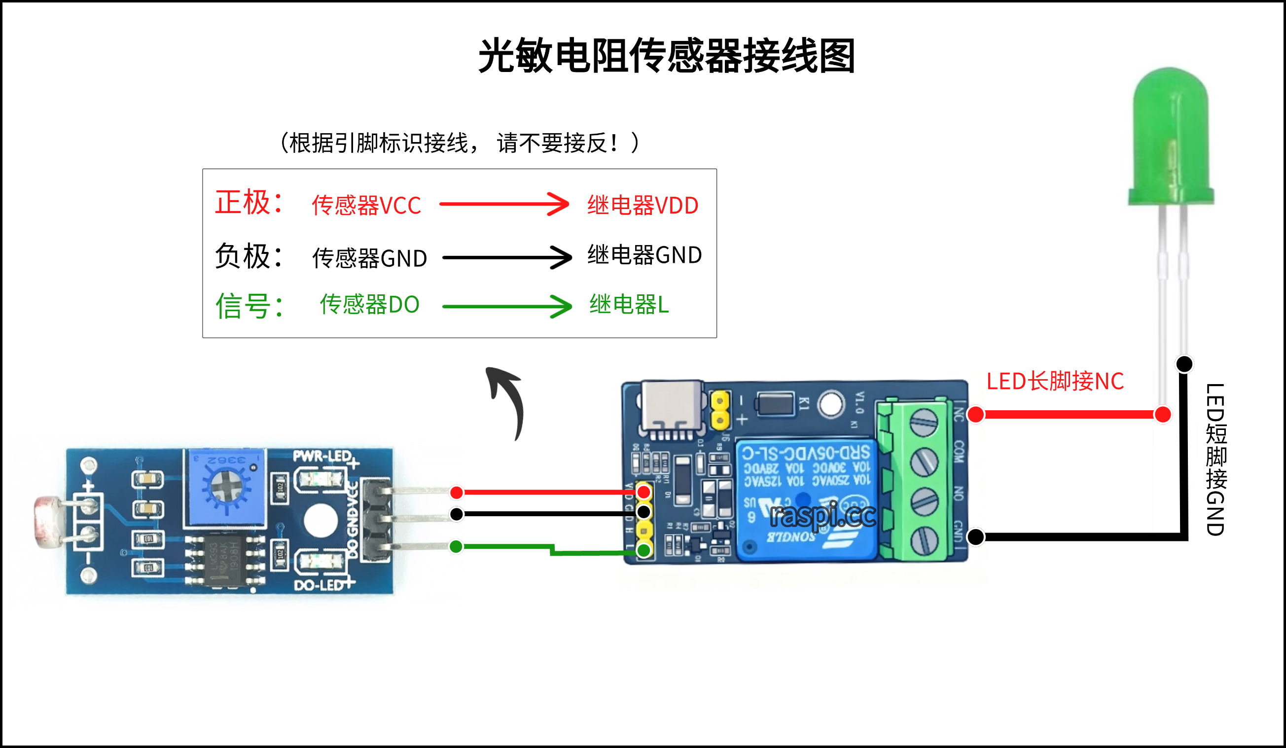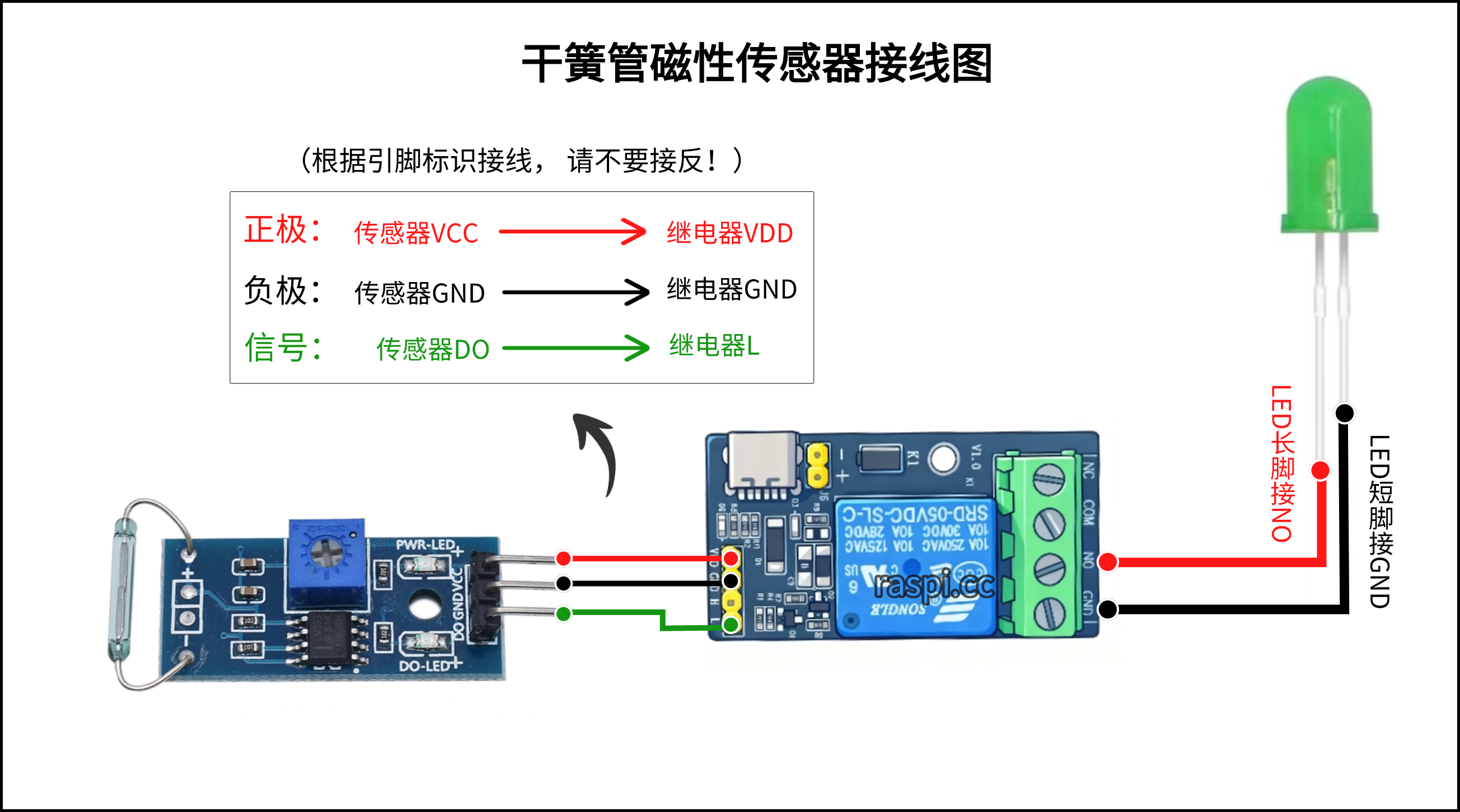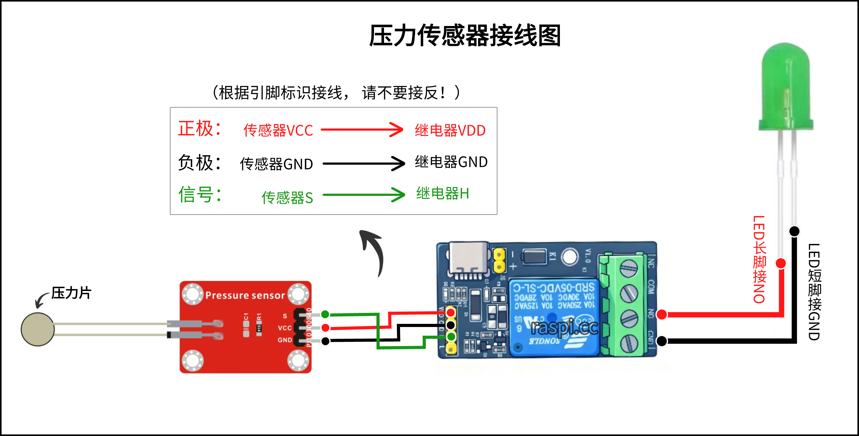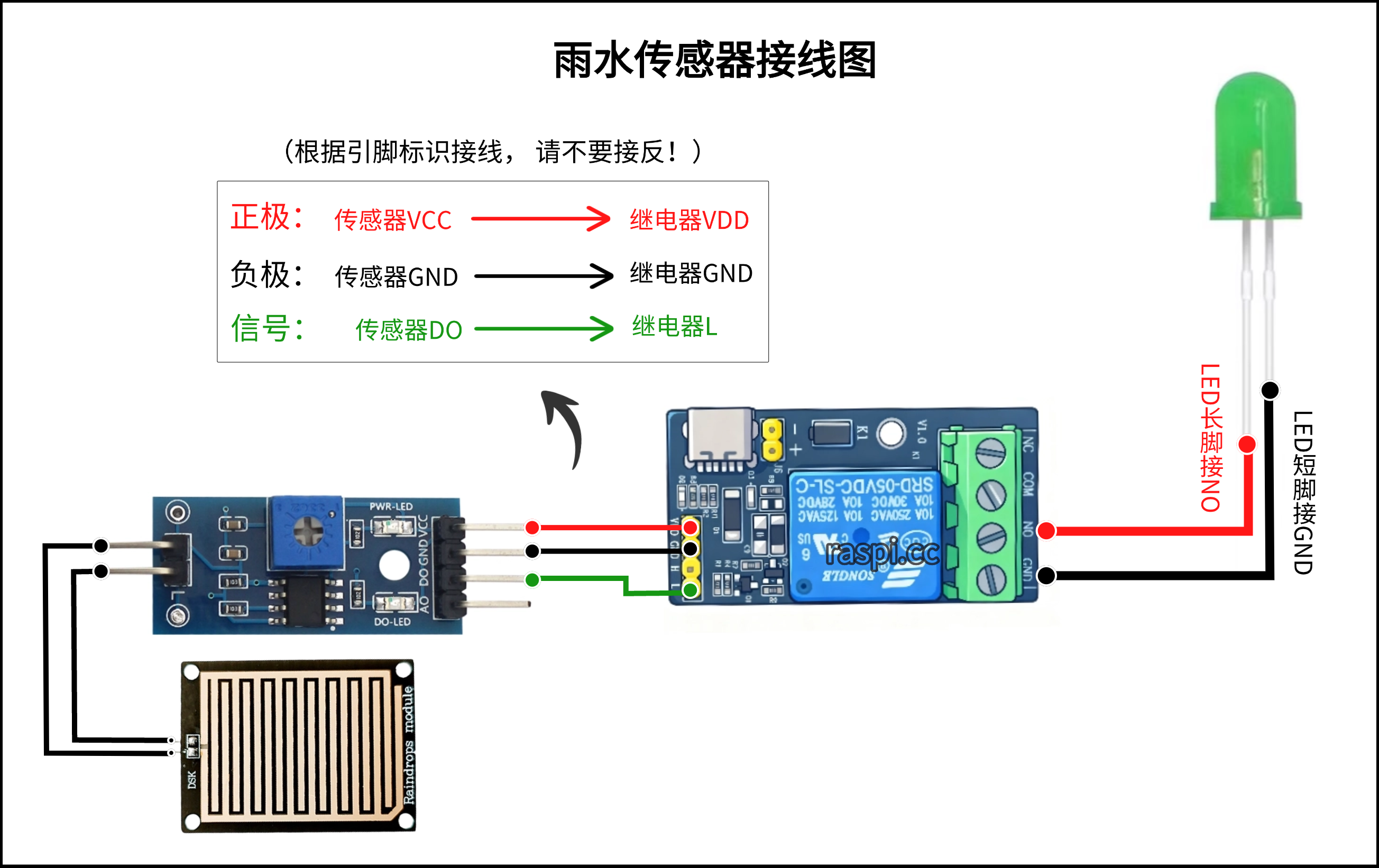 1.可将LED灯与报警器的线并联在一起同时插入控制端NO和GND即可。